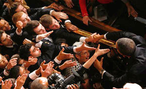 President Obama is mobbed after delivering his major health care address to Congress. Obama has promised to deliver millions of new customers to insurance companies.