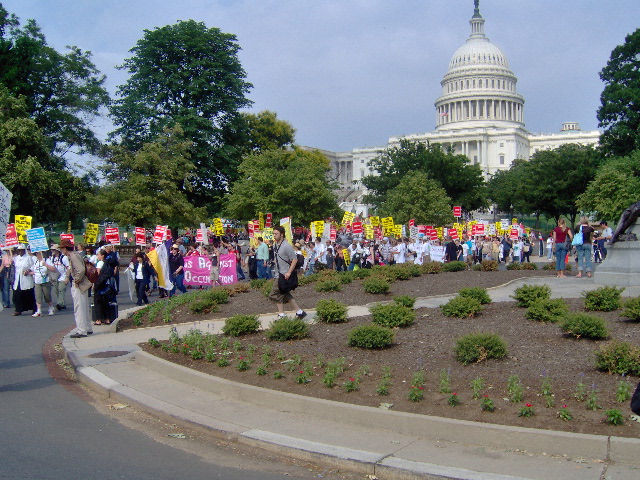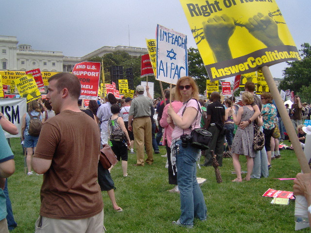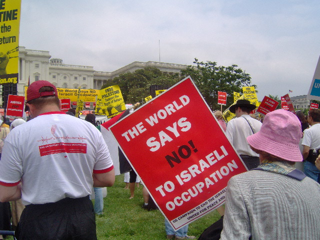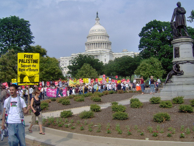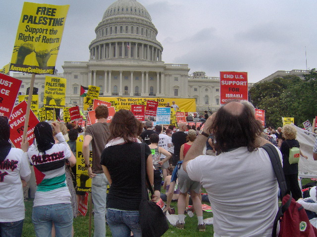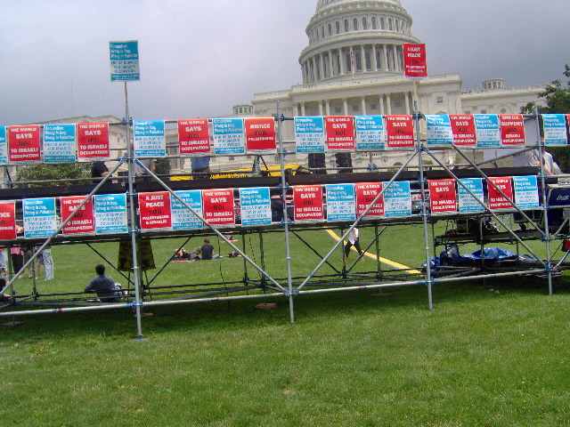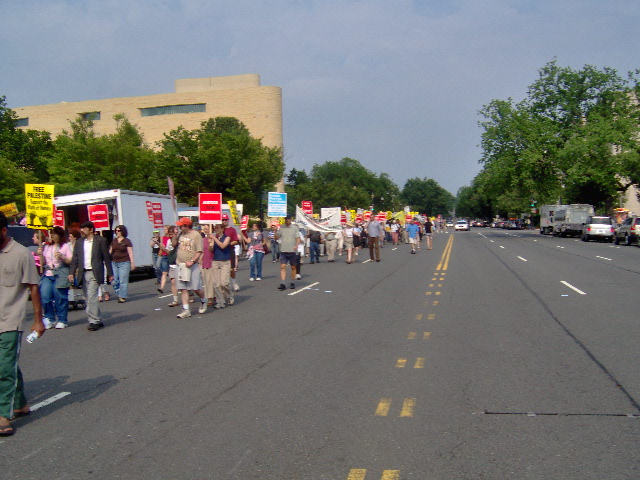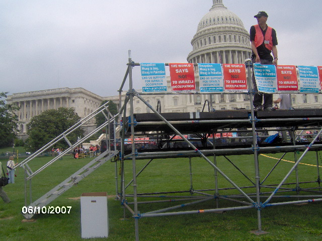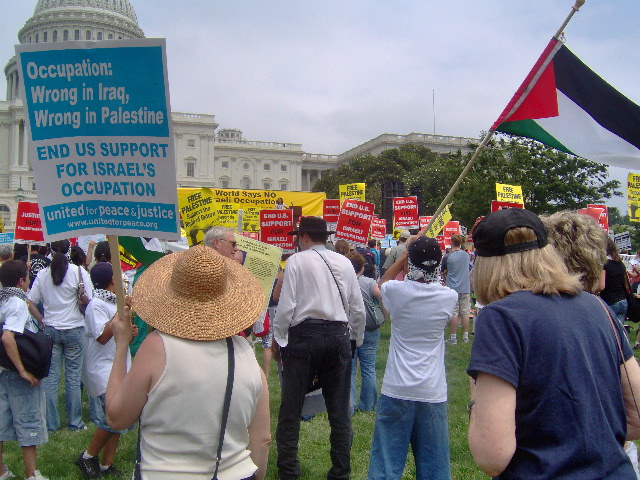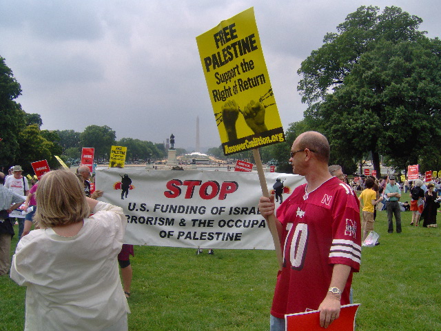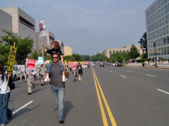 Here are some of my photos from the 10 June March on Washington, D.C. to End the Israeli Occupation. I rarely ever take pictures so the quality is not good. And I was warned to stay behind the yellow lines by the motorcycle cop pictured here so angles on the length of the march were fewer than I’d hoped to get; from the Capitol to the Ellipse the streets were filled with protesters.